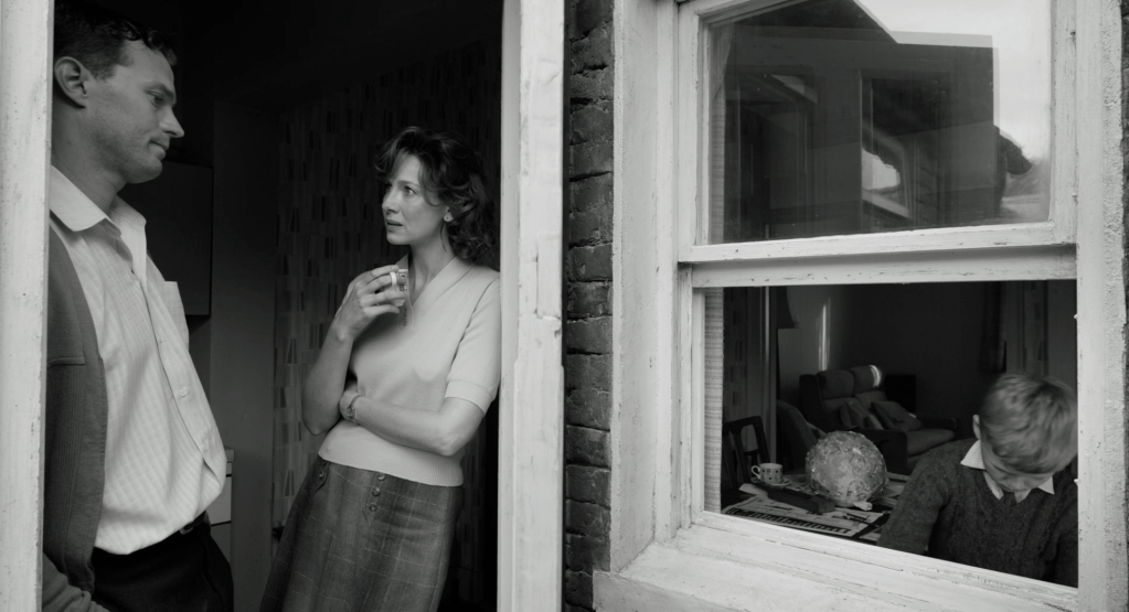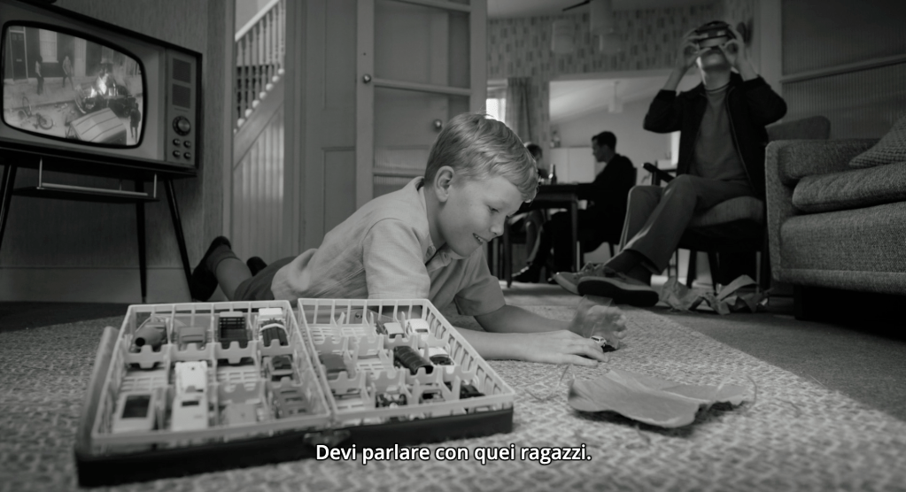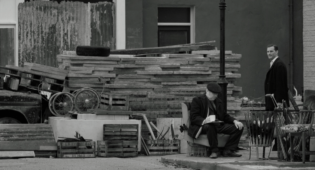 La Belfast in bianco e nero che viene rappresentata nel film, se pur con una tanta violenza, ci lascia sognare. Questo grazie ai piani profondi e tridimensionali davvero mozzafiato di Haris Zambarloukos (alcuni frame di seguito).